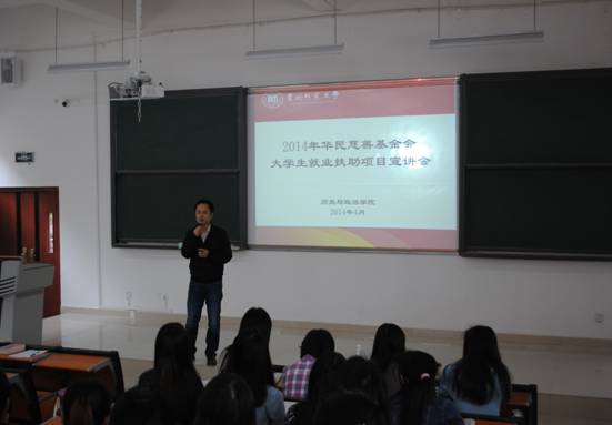 公司党委安排相关老师在花溪校区举办老员工就业扶助项目宣讲会。在宣讲会上,向公司2011级员工说明,老员工就业扶助项目不仅为家庭经济困难员工提供经济上的帮助,更为他们就业能力的提升提供了良好的平台,鼓励同学们积极申报。相关老师在宣讲会上重点向同学们解释该项目的相关政策和有关申报注意事项。