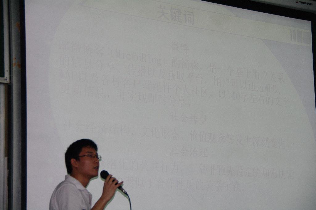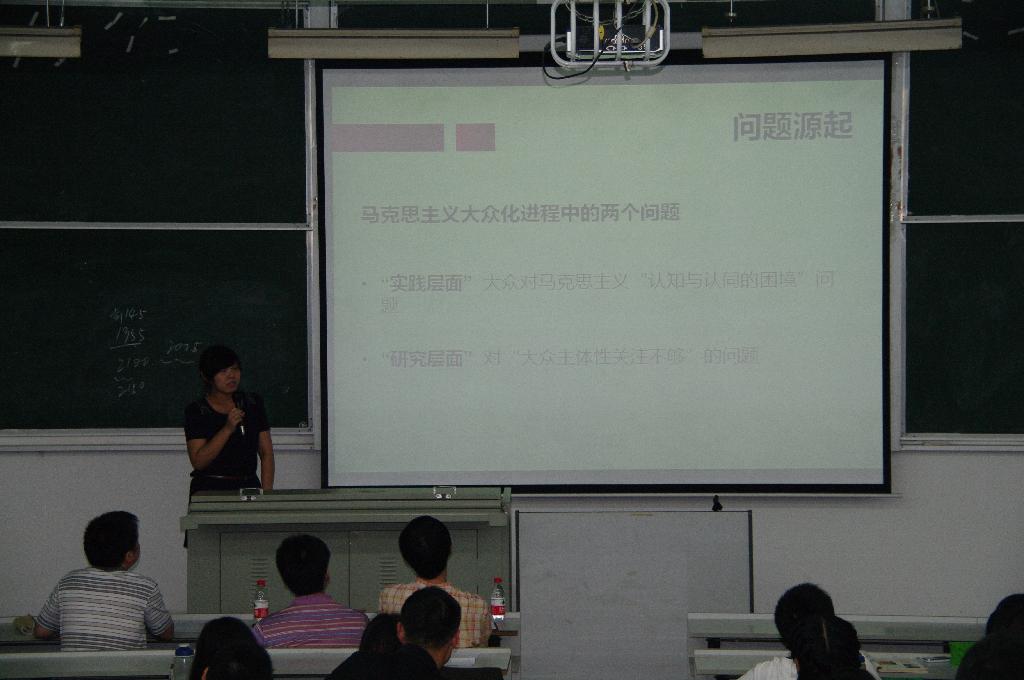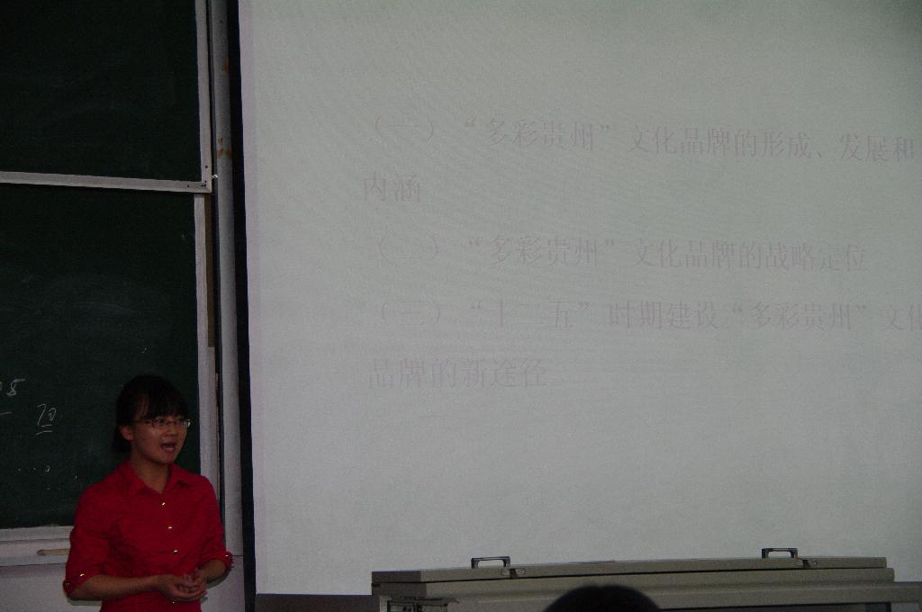 本次论坛主讲人由2011级研究生李晶鑫、陈雪、佟明艳、林举华,吴婷、刘相风等六位同学组成。他(她)们分别从“运用微博完善社会治理机制”、“司马迁的人格”、“十二五规划时期建设多彩贵州”、“做学问的态度”、“符号化的马克思主义”、“对唯物主义辩证法的理解”等方面做了主题发言。
